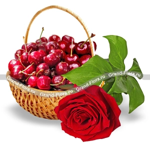 Ягодный соблазн - композиция на оазисе с клубникой и розами в виде сердца