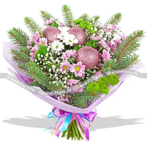 Сказки леса - новогодний букет из хризантемы и еловых веток