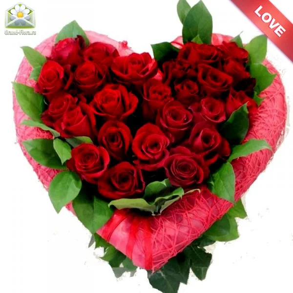 Букет из красных роз на оазисе. Идеальный подарок любимому человеку на День Святого Валентина.