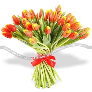 Тюльпан – это нежный и хрупкий цветок, который способен покорить своей красотой даже самое неприступное и ледяное сердце. А огромный букет желтых тюльпанов может стать для вас началом примирения с любимой девушкой или зажжет страсть в глазах сотрудницы, которая вам давно симпатична.